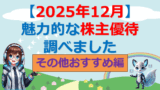 ただし、長期保有を前提としており、最低保有株数も400株からですので、金額と年数が必要になります。