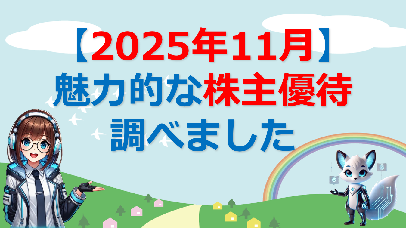 今回は2025年11月に権利確定日を迎える株主優待の中から、個人的におすすめの銘柄を紹介します。