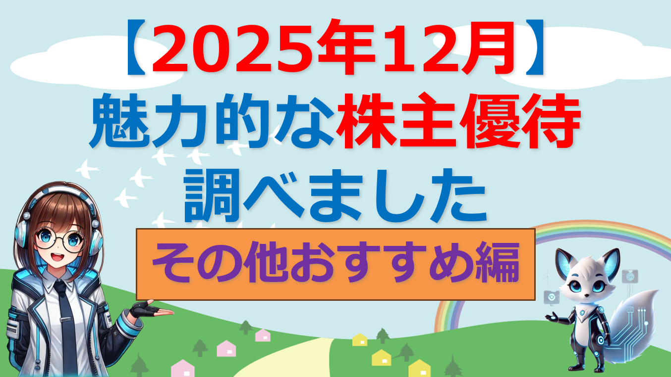2025年12月のおすすめ株主優待を紹介してきました。 株主優待は株式投資の魅力の一つではありますが、無理をして株式を保有する必要はありませんので、自分や家族と相談のうえ、無理のない範囲で行いましょう。